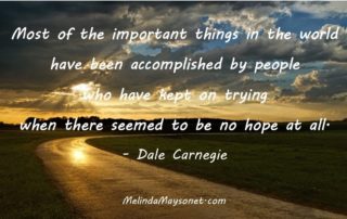 Hello Friends, I find that we often spend too much time wallowing in disappointment, usually because we had strong feelings surrounding the person or situation. disappointed 1 : defeated in expectation or hope; 2 obsolete : not adequately equipped When things don't happen, or people don't behave, the way we want or expect we feel disappointed. Then we stew in that feeling and make up horrible stories about why this happened, we can't stop thinking and talking about it, we get into a funk and become crabby or sad, and this can go on and on for a long time. [...]